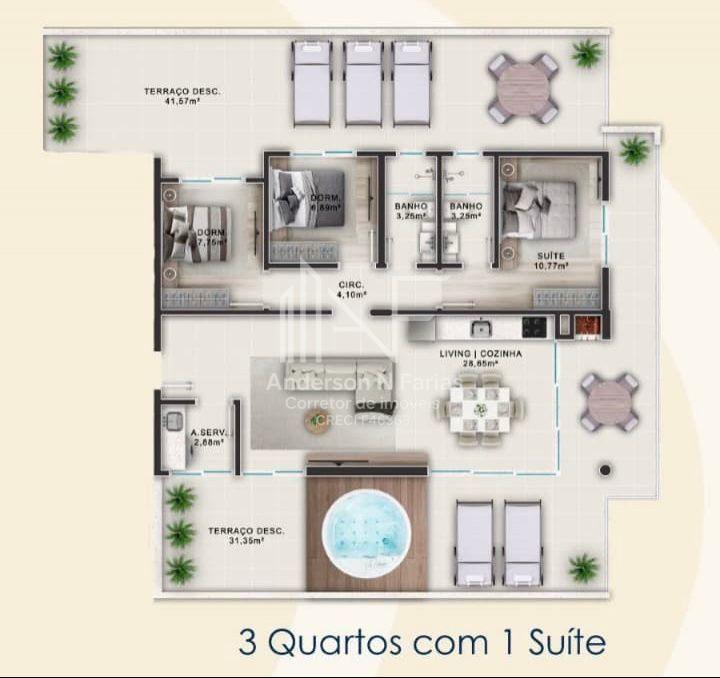 3 dormitórios sendo 1 suite