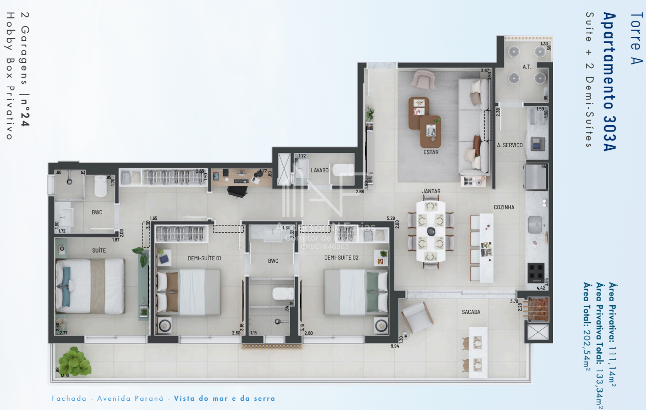 Área Privativa Total: 133,34m²