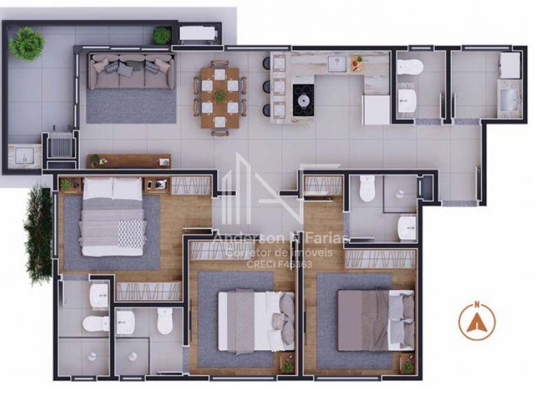 Apartamento 301 Tipo com 84,83, m² privativo