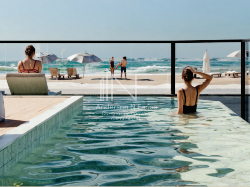 São 147,06m² de área total, com 3 dormitórios (2 suítes), churrasqueira e uma sacada com vista para o mar.