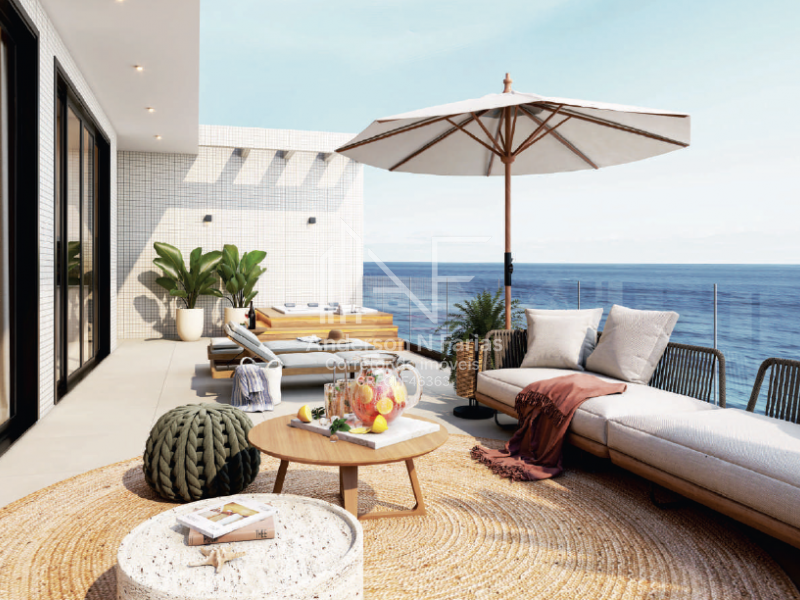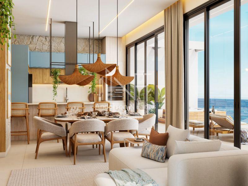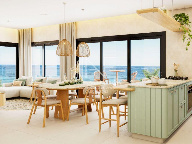 São 134m² de área total, com 3 dormitórios (2 suítes), churrasqueira e uma sacada com vista para o mar.